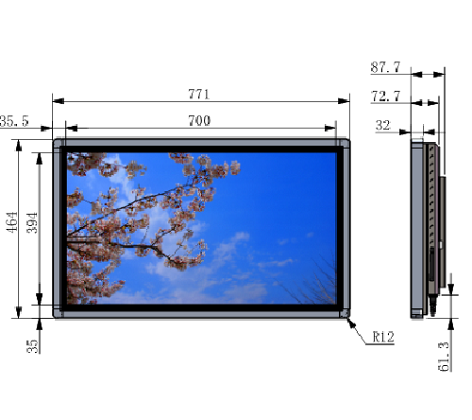 外殼配置 | 外殼材質(zhì) | 表面3MM鋼化玻璃,邊框鋁合金型材,后殼1.5MM鈑金。 |